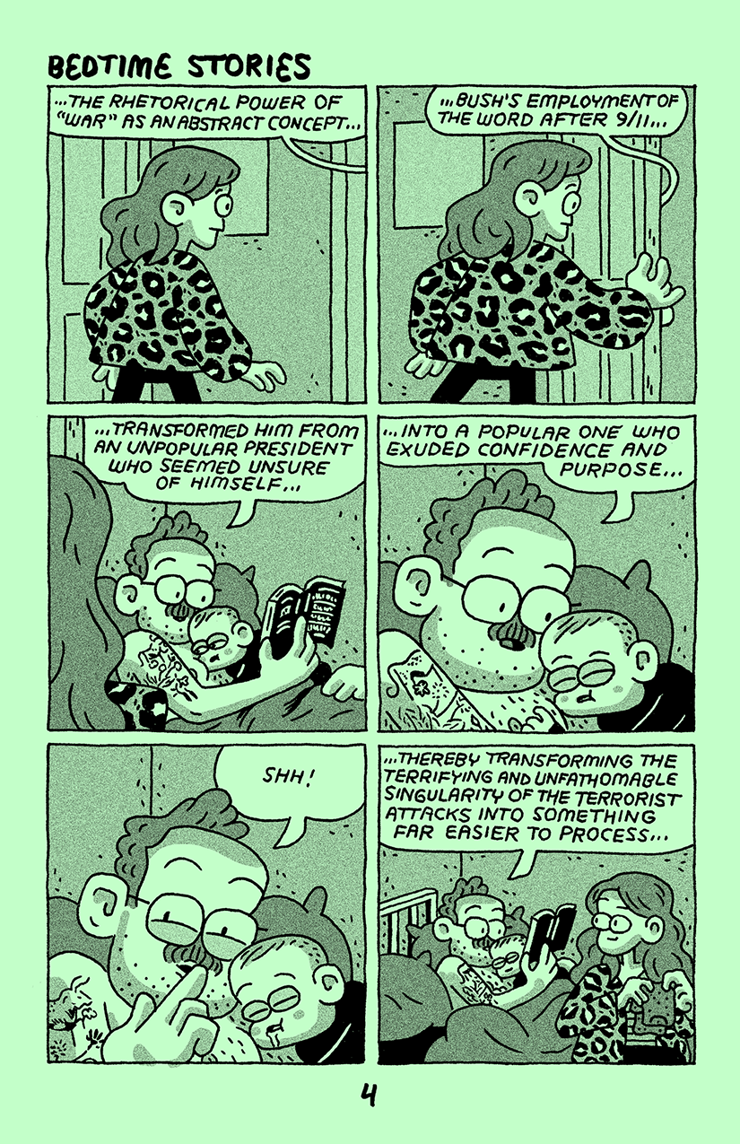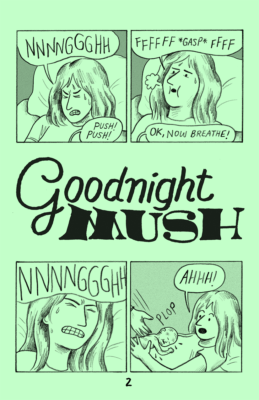Goodnight Mush is a collaborative collection of autobio comics about new parenthood by both “Mama” (aka Alessa Kreger) and “Dada” (aka Jordan Jeffries). Forty pages of comics about the first year of parenthood full of laughs, tears, and even juggalo face paint. For anyone who knows who Miss Rachel is, and for everyone blissfully unaware too.