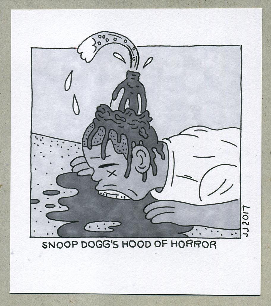 Original pen & marker drawing based on the 2006 Stacy Title movie Hood of Horror, starring the man himself: Snoop Dogg. Paper size is approx. 4 1/8" x 4 3/4".