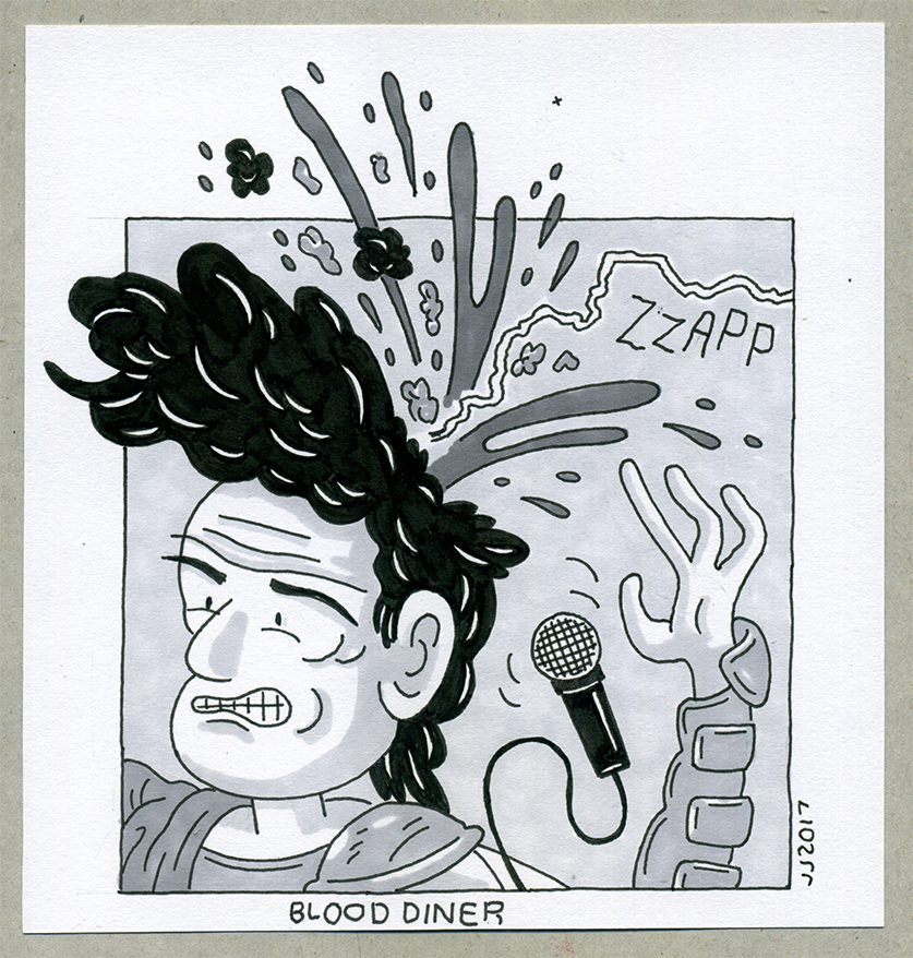 Original pen & marker drawing based on the 1987 Jackie Kong movie Blood Diner. Paper size is approx. 5.25" x 5.5".