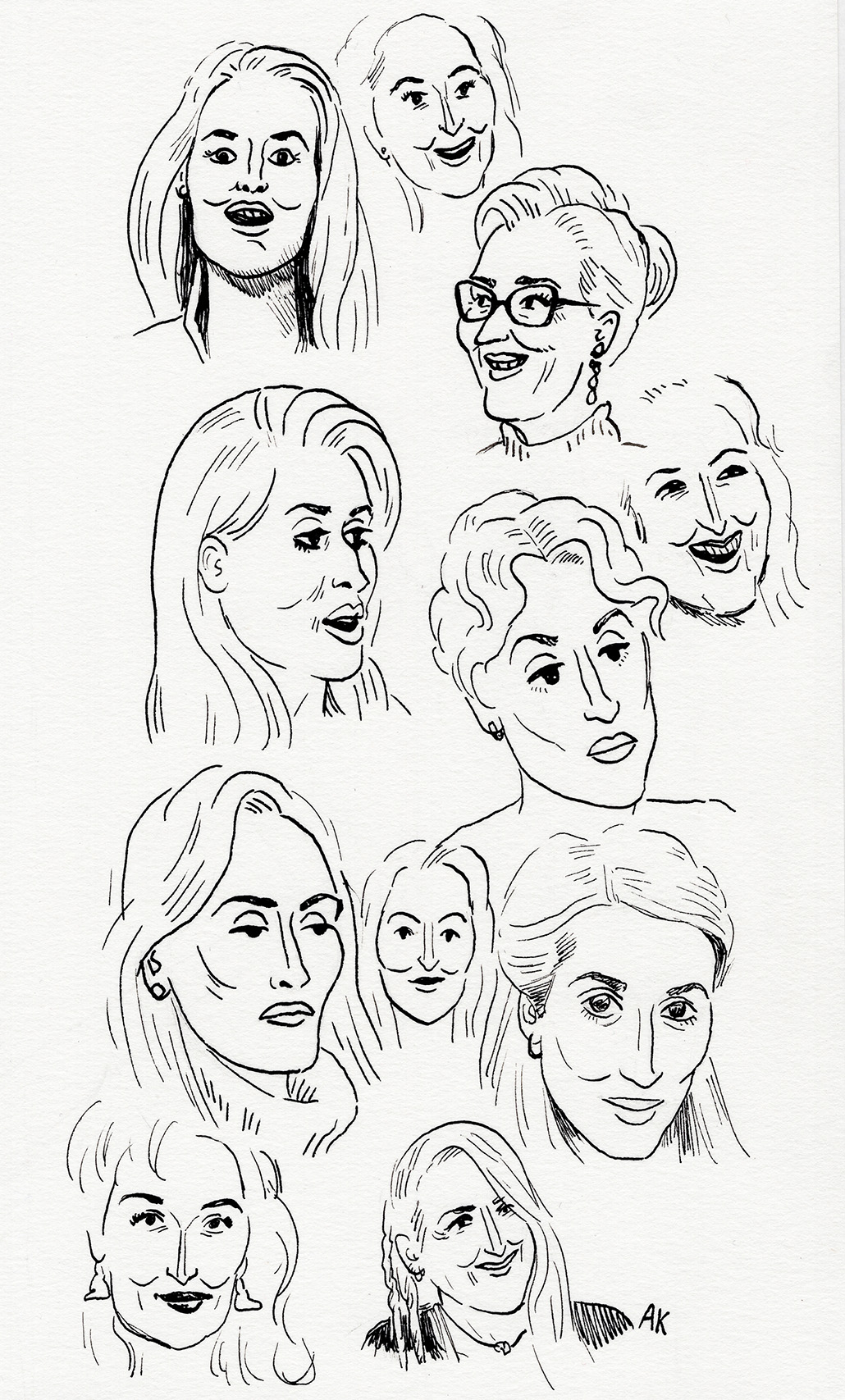 Original ink drawing by Alessa, featuring many Meryls. Paper size is approx. 5.25" x 8.5".