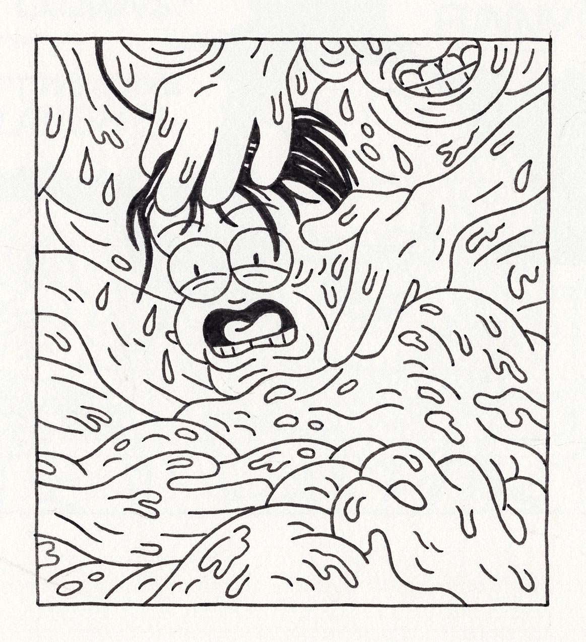 Original pen & ink drawing by Jordan based on the 1989 film SOCIETY. Paper size is 4.5" x 5.75"