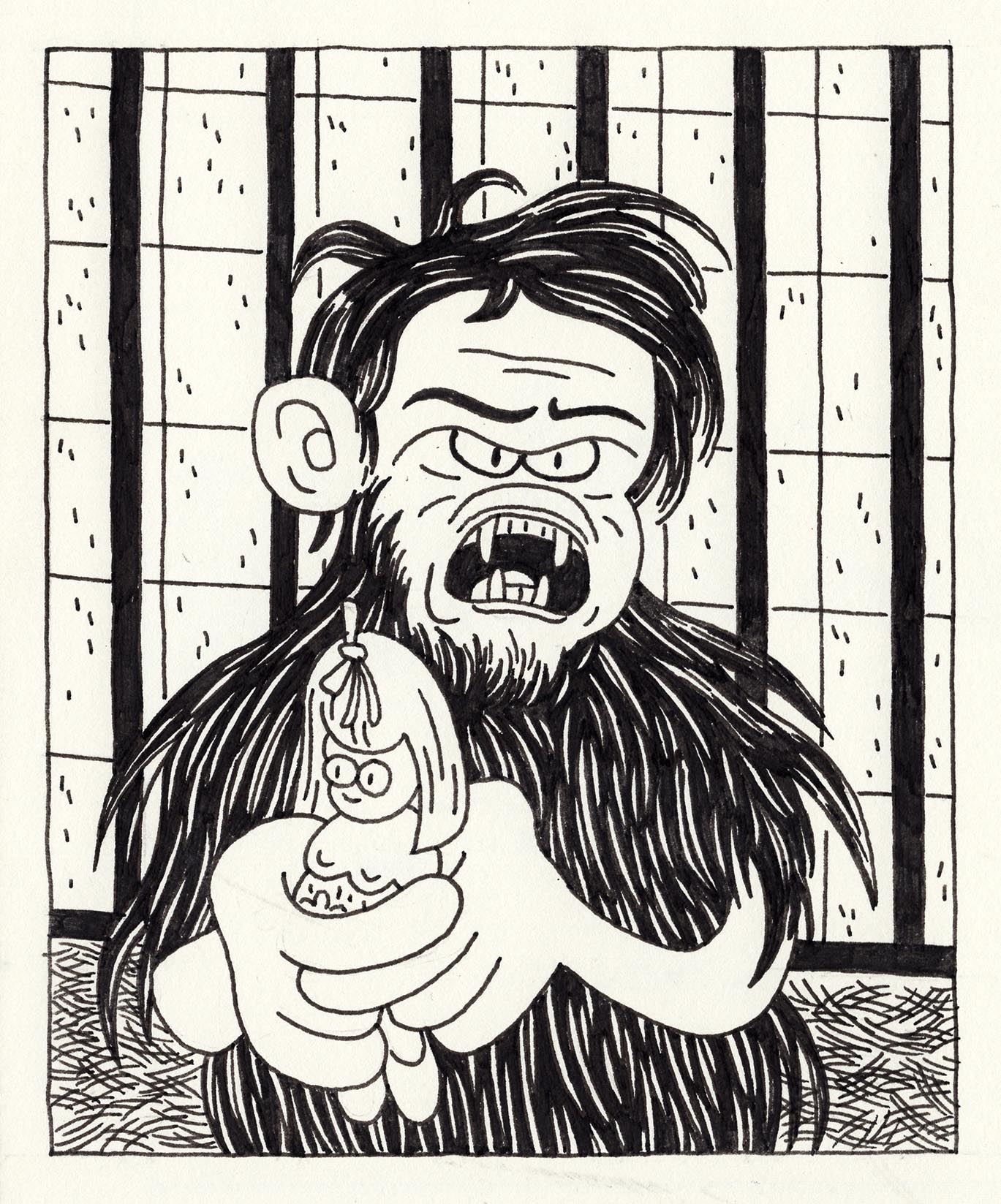 Original pen & ink drawing by Jordan based on the 1970 film TROG. Paper size is approx. 4.5" x 6.5"