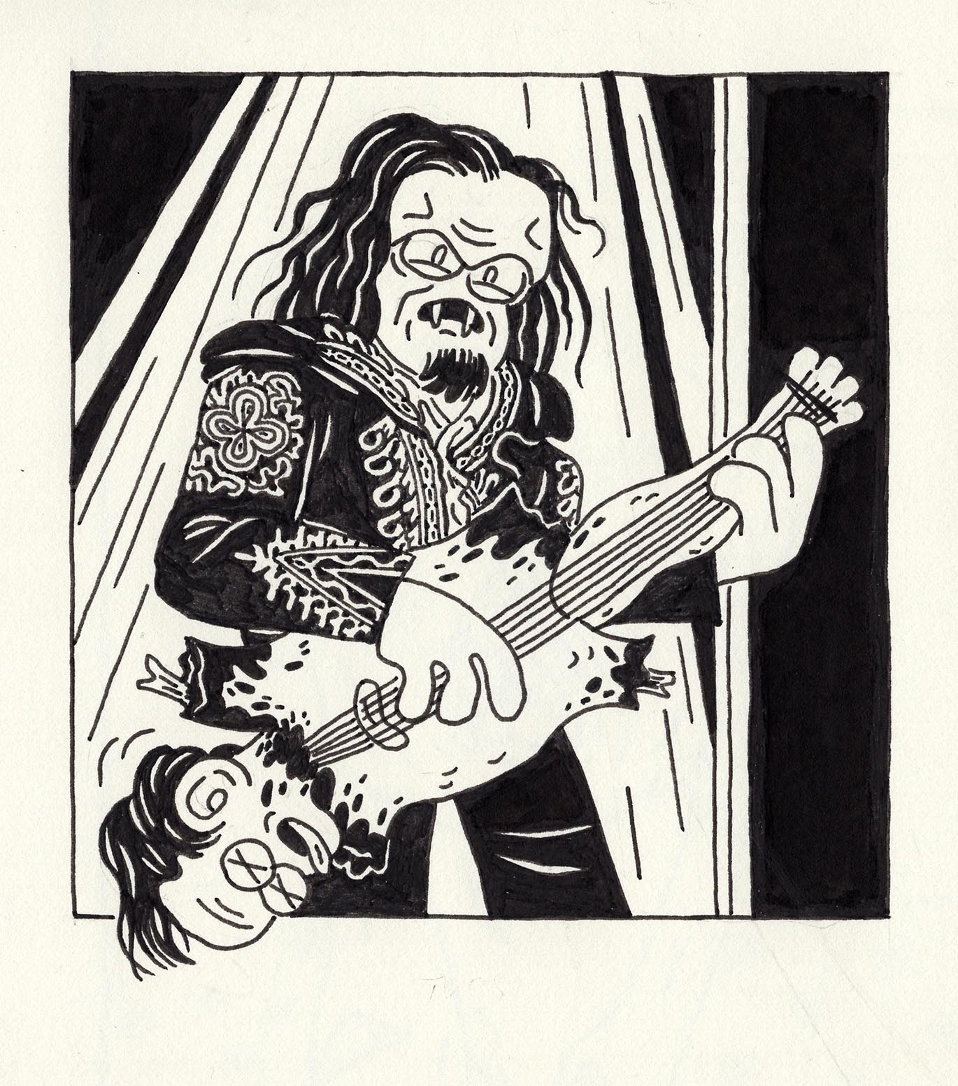 Original pen & ink drawing by Jordan based on the 1996 film FROM DUSK TILL DAWN. Paper size is approx 5" x 5.5"