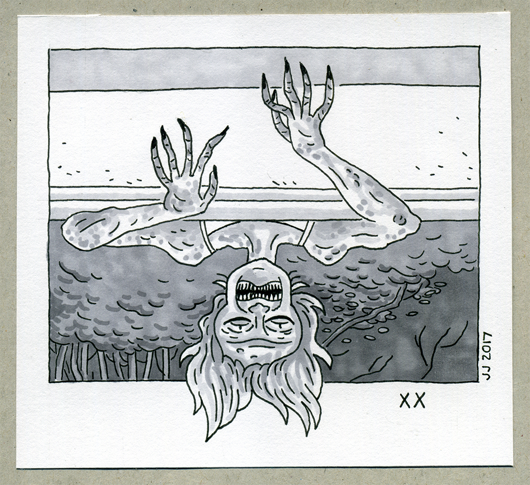 Original pen & marker drawing based on the 2017 horror movie anthology XX. Paper size is approx. 5" x 4.5".