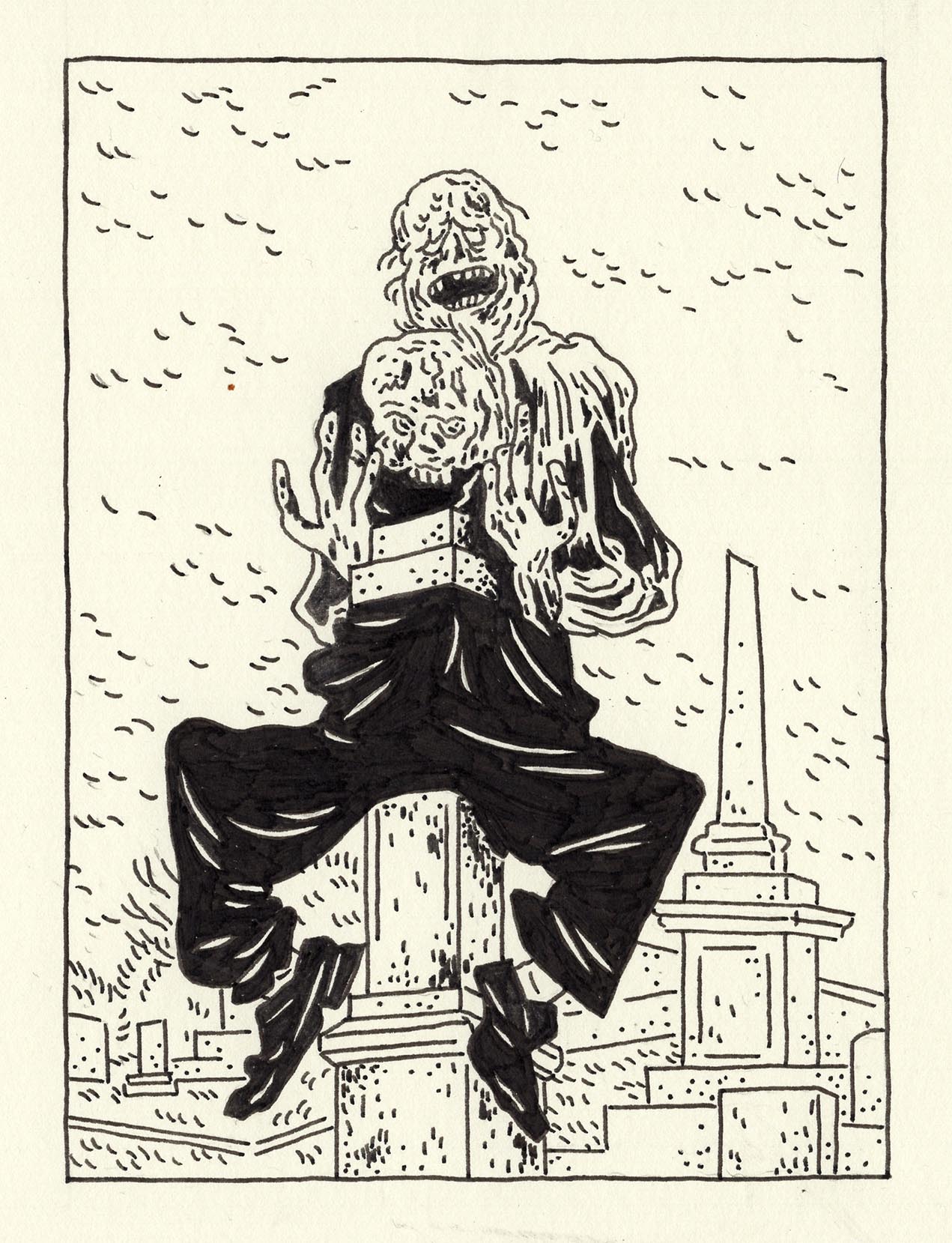 Original pen & ink drawing by Jordan based on the 1974 film THE TEXAS CHAIN SAW MASSACRE. Paper size is approx. 5" x 6.5"